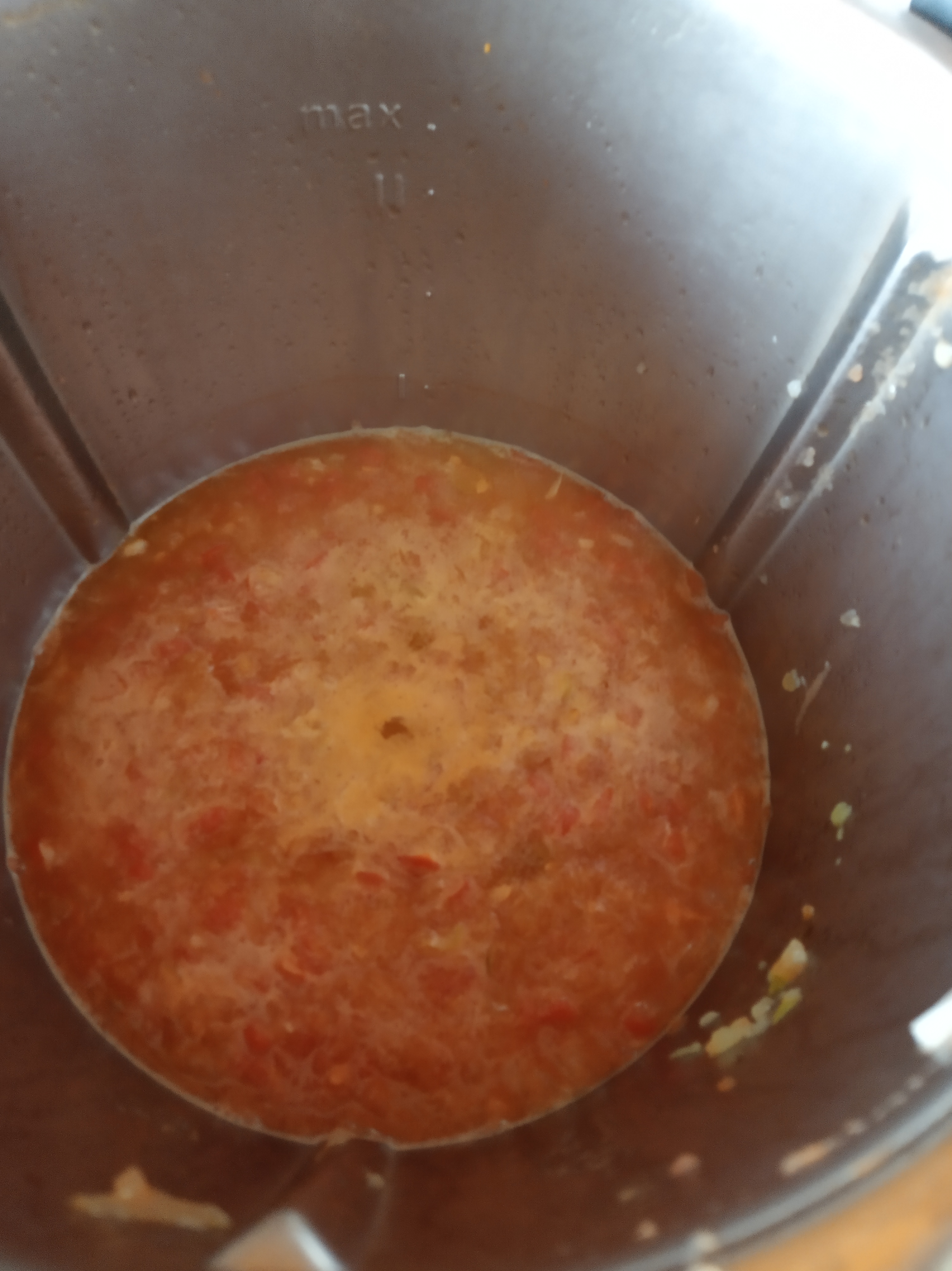 2° Ponga en el vaso el tomate y triture 10 seg/vel 5. Retire a un bol y reserve.