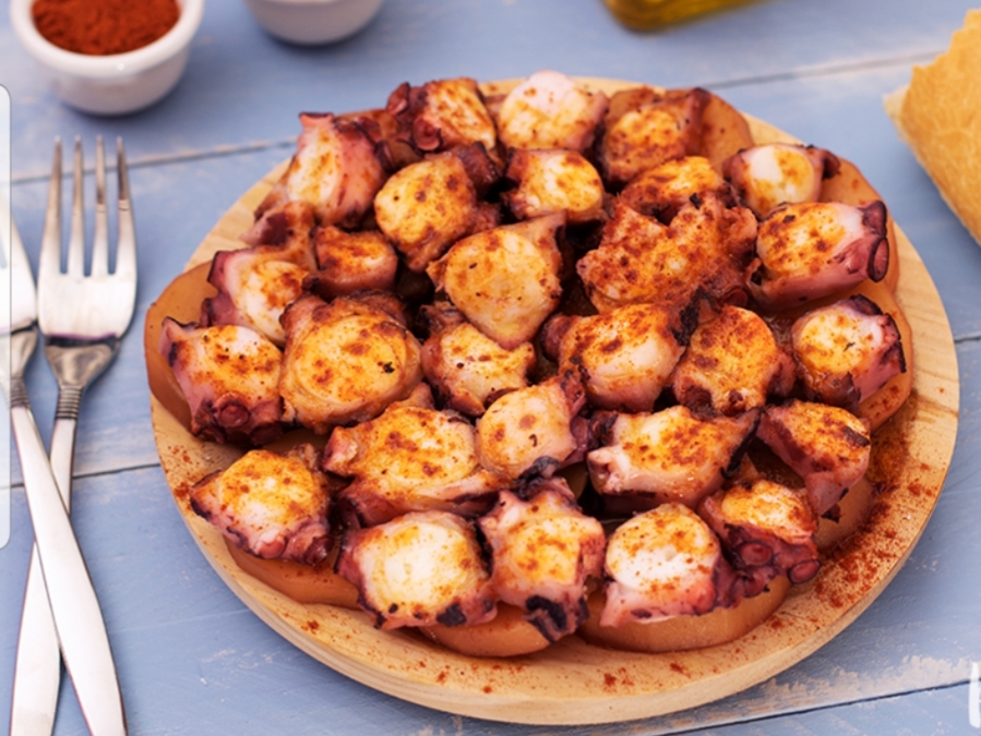 Pulpo: Uno de los mas populares frutos del mar. El pulpo a la gallega aunque aparenta ser una receta sencilla, lo cierto es que tiene su miga, pues variará mucho el resultado dependiendo de la calidad del pulpo, y de su forma de cocción. Yo siempre prefiero tomar el pulpo en las pulperías, donde manos expertas te lo presentan perfectamente cocinado, sin embargo algunas veces apetece en casa y no podemos nada más que ponernos manos a la obra para conseguir un auténtico y delicioso pulpo a la gallega o "a feira".