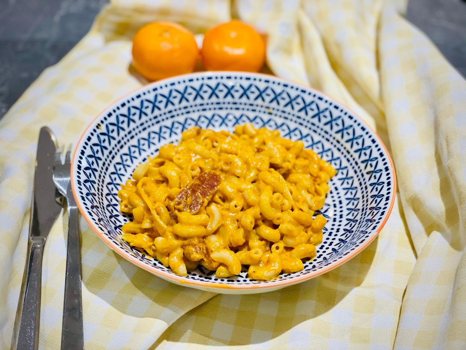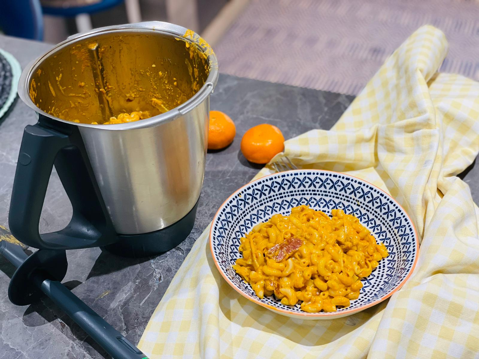 SUGERENCIA: La receta de cookidoo es de tallarines, yo hice pasta corta porque mi hija la adora y utilice un poco de nata para darle mas textura. ( 50 grs aproximadamente, al acabar la cocción de la salsa y le di a cocinar 3 minutos mas )