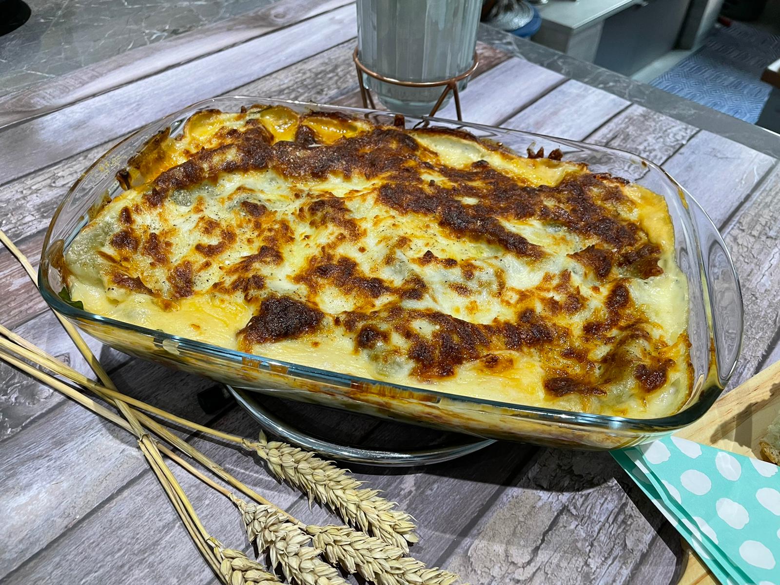 - Le agregue espinacas frescas entre capa y capa en la elaboración, incluso puedes alternar con laminas de pasta tipo lasaña.