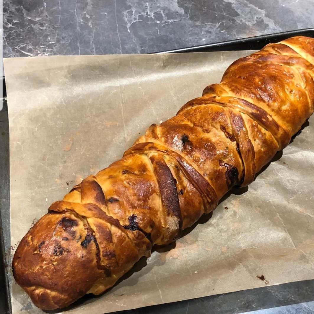 - Pincele la superficie con 1 huevo batido con un poco de leche. Hornee durante 30-40 minutos (180°C) o hasta ver dorado. Sirva templado o frío.