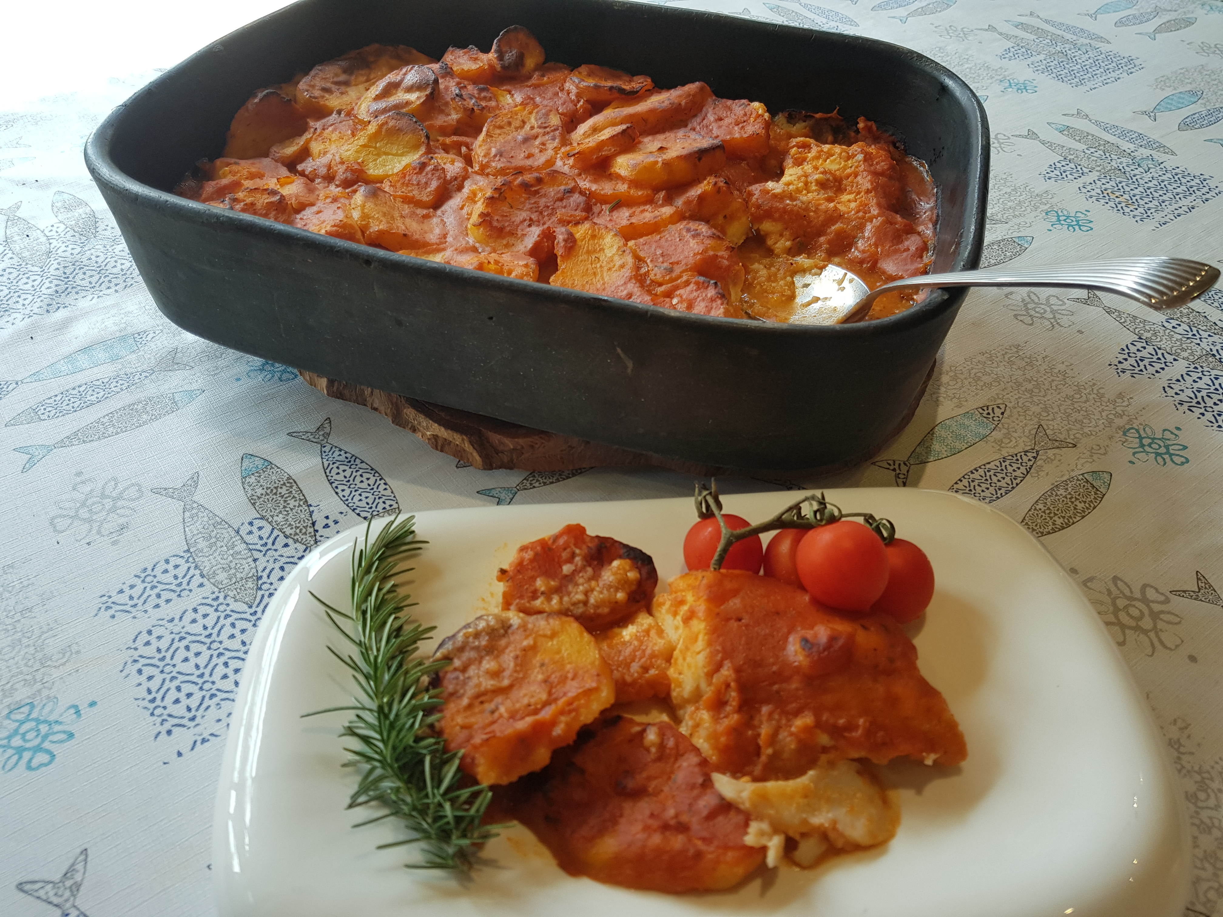 En fin....Recuperar los sabores más antiguos del Mediterráneo: Pescado, patatas , aceitunas , tomates, aceite de oliva.... Con esta idea se ha diseñado este plato de Bacalao...te invito a probarla porque se que puede convertirse en una auténtica receta mediterránea.