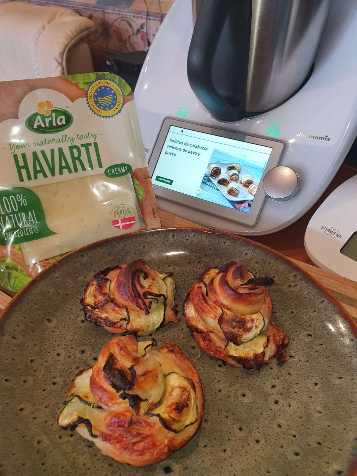 Te presento mi versión de esta riquísima receta de cookido, fue todo un acierto y en mi casa los han devorado. Una receta muy completa porque he mezclado vegetales como el calabacín con pavo que siempre es muy un sano y el indiscutible sabor del queso ARLA HAVARTI, y para darle un toque mas goloso incluí masa de hojaldre que siempre es un éxito para darle a cualquier receta ese punto crujiente e irresistible.