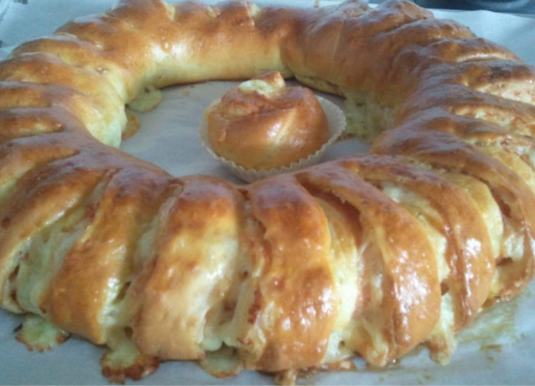 5-Estire la masa formando un rectángulo, añada el relleno elejido dulces o salados y enrolle el rectángulo una vez hecho el rollo formando un a rosca, cortelo con el cuchillo alrededor sin llegar al final. También puede cortar en trocitos y colóquelas en capsulas.
